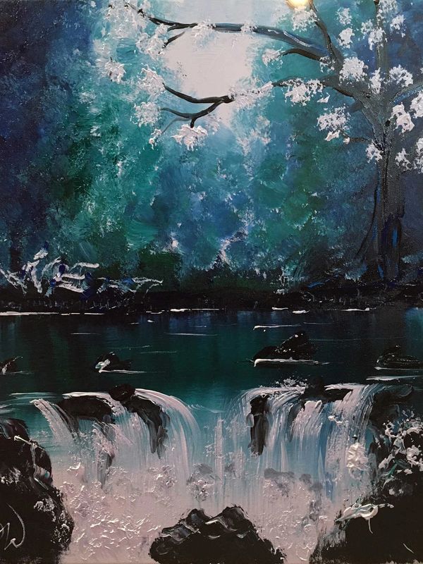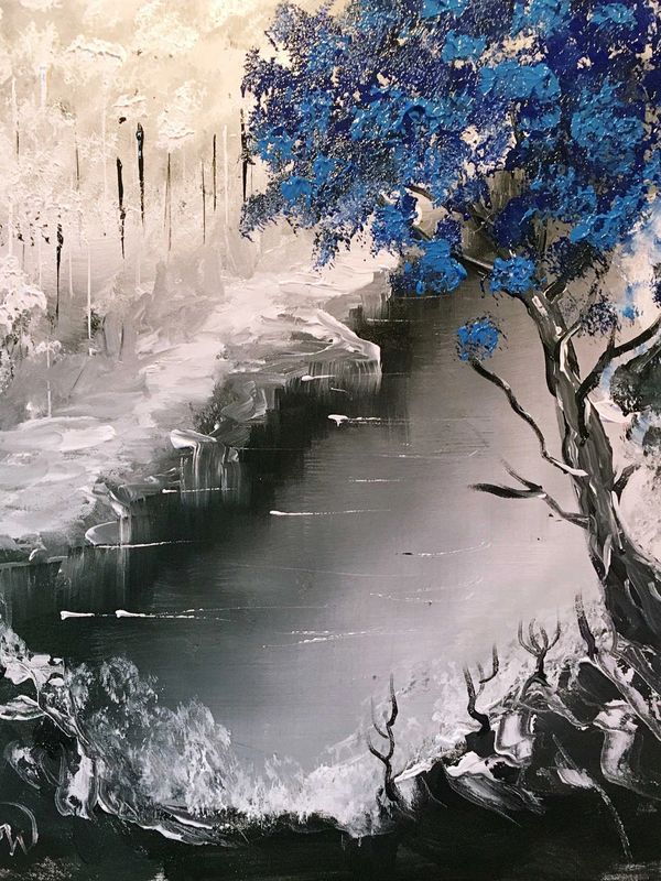 Blue Tree on a Frozen River - Acrylic on Canvas